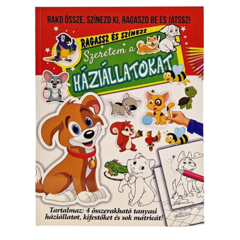 Szeretem a háziállatokat foglalkoztató füzet 945030 Szeretem a háziállatokat foglalkoztató füzet 945030 Rakd össze, színezd ki, ragaszd be és játssz! Tartalmaz : 4 összerakható tanyasi háziállatot, kifestőket és sok matricát! Füzet mérete : 28 x 2