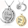Romantikus szerelmes nyaklánc "Szeretlek a Holdig és vissza" felirattal, elérhető arany és ezüst színben. Tökéletes ajándék pároknak