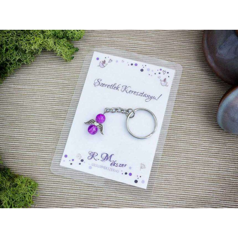 Tedd fel kérdésed a(z) Szeretlek Keresztanya lila angyal medálos kulcstartó termékről!
