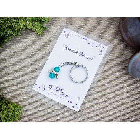 Szeretlek Mama pávakék angyal medálos kulcstartó kulcstartó 1 kép
