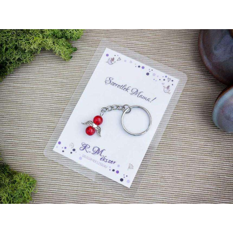 Tedd fel kérdésed a(z) Szeretlek Mama piros angyal medálos kulcstartó termékről!