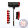 A készlet tartalmaz 7 darab csavarhúzó feje és 7 darab dugókulcsot. A T-nyelű nyélbe mágnes segítségével rögzíthetjük a csavarhúzó fejeket.7 darabos dugókulcs méretei: - 4 mm, - 5 mm, - 5.5 mm, - 6 mm, - 7 mm, - 8 mm és 9 mm.
