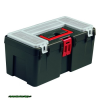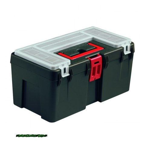 -Ütésálló, mély szerszámos láda -Kivehető szerszámtartó tálcával -Transzparens tető alatt 4 kisebb + 1 nagyobb tárolóhely -A láda fedele 1 nagy csattal záródik -Lakattal zárható -Műanyag fogantyúval Méret: 400x230x200mm