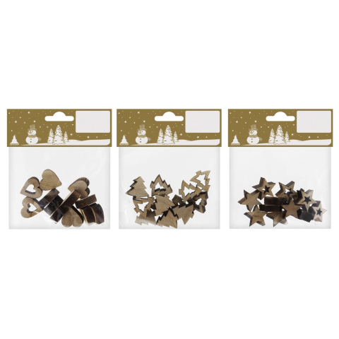 1 kép Szétszórható fa dekoráció 13 darab 1 cm natúr többféle változatban