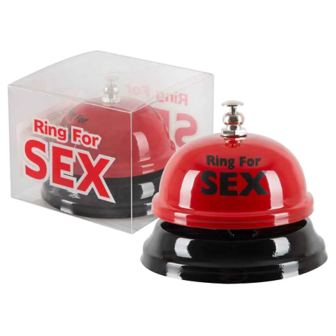 Szexre hívó asztalcsengő.Piros, asztali fémcsengettyű, fehér felirattal: Ring for sex (azaz csengess, ha szex kell). A hálószobák elengedhetetlen kelléke. Kérd meg kedvesedet, hogy pár percre menjen ki egy másik helységbe amíg készülődsz, majd ha kész vagy, csengess neki - ez kiváló felvezetése lehet egy új fehérneműnek, vagy játékszernek. De a spontán szexhez is remek. Kb. 5,5cm magas, a csengő átmérője kb. 8cm. A csengő a tetején lévő fém pöcök megnyom