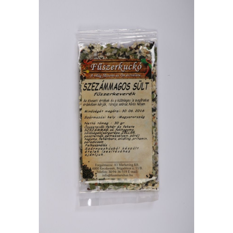 A szezámmagos sült fűszerkeveréket elsősorban szárnyashúsból készült ételek ízesítéséhez ajánljuk. A szezámmagos sült fűszerkeverék földimogyorót, diót, zellert, mustármagot és szezámmagot is feldolgozó üzemben készült. Fűszerek, fűszerkeverékek gas