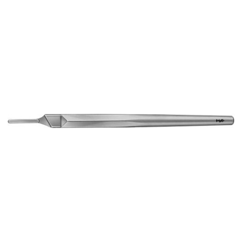 Szikenyél BB068R Barron-féle, Nr. 3 Rozsdamentes acél Autoclavban sterilizálható Méret: 130 mm Hozzá illeszthető szikepengék: BB510 - BB515, BB540 - BB542