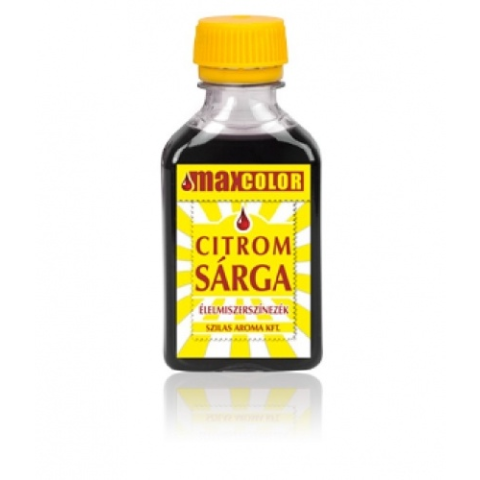 Citromsárga élelmiszerszínezék Minőségét megőrzi: 12 hónap Desztillált vízben és etil alkoholban oldott színezőanyag Színezék: E102 („a gyerekek teljesítményére és figyelmére káros hatást gyakorolhat”) Étkezési sav: E330 Tartósítószer: E211, E202 Adag