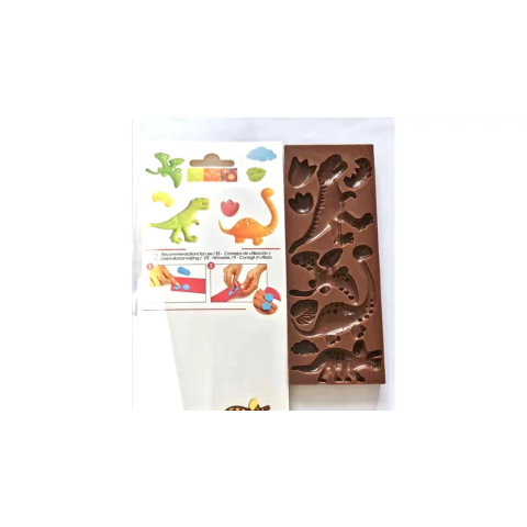 Szilikon csokoládé forma - dinoszaurusz,dínó mintákkal. Anyaga: hőálló szilikon. Méret: 20 cm × 10 cm Mélysége: kb. 0,5 cm