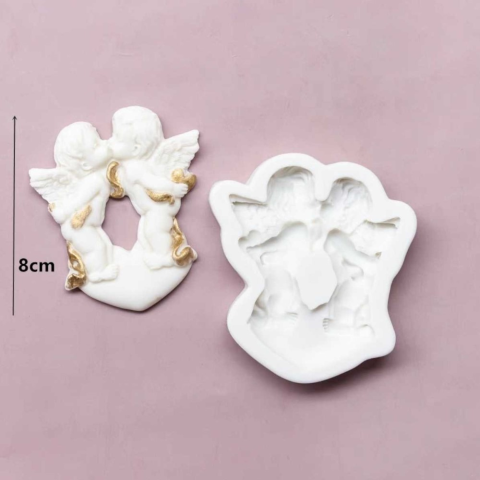 1 kép    Szilikon fondant és marcipán mintázó-Csókolózó angyalka 6,8x8cm