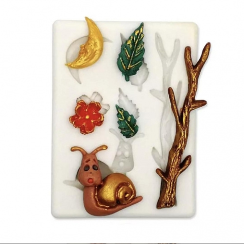 1 kép SZILIKON FONDANT MINTÁZÓ - HOLD, CSIGA, FAÁG