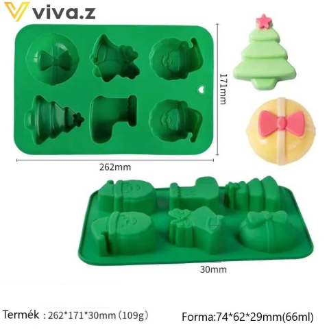 Anyaga: szilikon A forma teljes mérete: 24 cm x 16,5 cm A figurák méretei: - magassága: 6,5- 7 cm - szélessége: 6,5 cm - mélysége: 2 cm. Színe: piros Karácsonyi szilikon figurák Tedd varázslatossá az ünnepi készülődést a karácsonyi szilikon figurákka