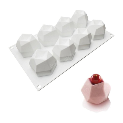 Szilikon Forma, Mousse Forma - 8 Adag Drágakő egy lenyűgöző konyhai eszköz, amely lehetővé teszi, hogy gyönyörű és luxus drágakő alakú desszerteket készíts otthon. Az élelmiszerminőségű szilikon anyag és a részletgazdag formatervezés biztosítja a tökéletes végeredményt minden alkotásnál.