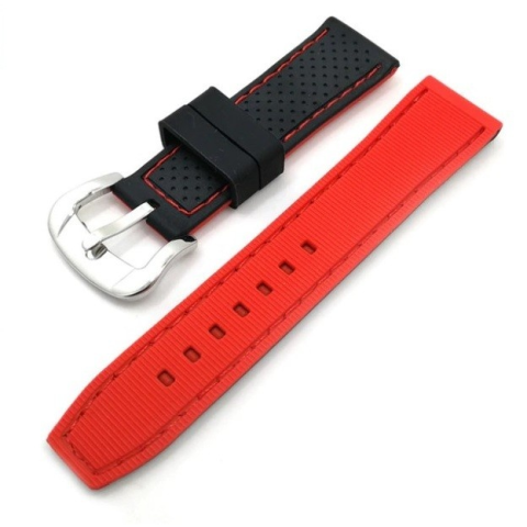 1 kép Szilikon óraszíj, fekete/piros, 20mm