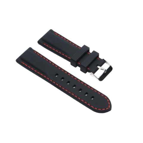 1 kép Szilikon óraszíj, fekete/piros varrás, 24mm