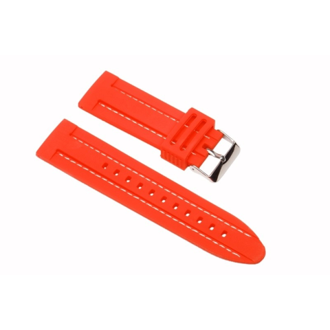 Szilikon óraszíj Szín: piros, fehér varrással Anyaga: szilikon, fényes acél csatt Szélessége: 22 mm Hossz: 130/75 mm (plusz csat) Vastagság: 4 mm Használja letölthető méretezési segédletünket!