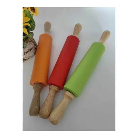 1 kép Szilikon sodrófa,nyújtófa fa nyéllel 37 cm