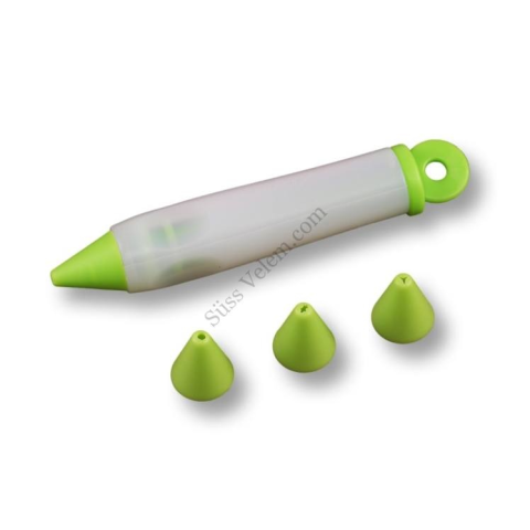 Jártál már úgy, hogy a csodásan elkészített tortádat egy félre sikerült felirattal rontottad el? Ha eleged van abból, hogy zacskóba töltött krémmel piszmogj, miközben könyékig ragacsos vagy, akkor próbáld ki a szilikon tortaceruzát! Segítségével csodás feliratokat, mintákat készíthetsz csokoládéból vagy krémből, de megtöltheted tojáshabbal is! Töltsd meg a szilikon tortaceruzát, majd helyezd rá a szükséges fejet, indulhat is a díszítés.
