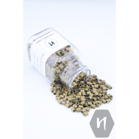 Minőségi szilikonos mikrohüvelyek perem nélkül, így nem sértik, vágják a hajat. A szilikonos betét színe megegyezik a hüvely színével, így nem látszik ki és plusz védelmet is biztosít. (4 * 2,7 * 4,5 mm) 1db csomagban vagy műanyag dobozban 1000db (+-5db)