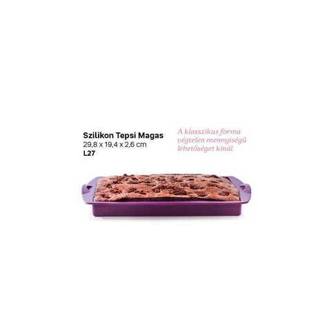 Termékjellemzők: - Tupperware szilikonos magas tepsi. - Mérete: 29,8 x 19,4x2,6 cm. - Használható mikrohullámú sütőben és hagyományos sütőben, valamit fagyasztóban is. - A terméket használat előtt nem kell kivajazni, belisztezni. - A megsült étel könnyedé