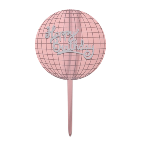 1 kép Sziluett tortadekoráció – Happy Birthday felirattal – Disco gömb – Rose Gold