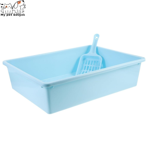 1 kép Szimpla macska alomtálca lapáttal - Kék