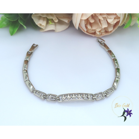 Gold Filled pici cirkóna kövekkel és görög motívummal díszített karkötő Szin: rodium (ezüst szín )Méret: 19cm /5-6mm
