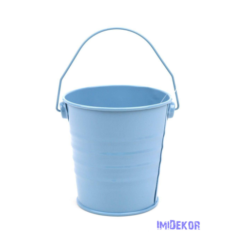 Színes bádog füles vödör 10cm - Kék dekorációs kellék 1 kép