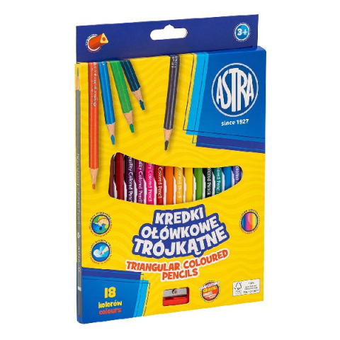 Színes ceruza ASTRA háromszögletű hegyezővel 18 színű