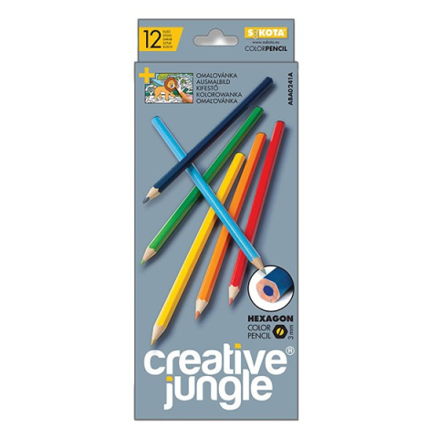 Színes ceruza CREATIVE JUNGLE grey hatszögletű 12 darabos Kiváló minőségű és színintezitású színes ceruza, lakkozott ceruzatest.