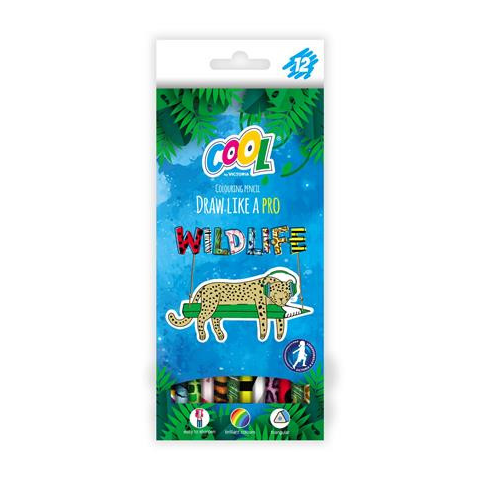 Színes ceruza készlet, háromszögletű, COOL BY VICTORIA "Wildlife", 12 különböző szín színes ceruza termékleírás