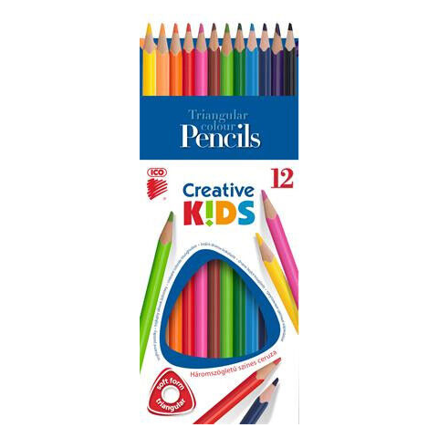 Színes ceruza készlet, háromszögletű, ICO Creative kids, 12 különböző szín Háromszögletű színes ceruza -lakkozott ceruzatest -kiváló minőség és színintezitás -12 féle szín/készlet Gyártó/első EU forgalmazó elérhetősége: ICO ZRT 2013 Pomáz, ICO út 5.