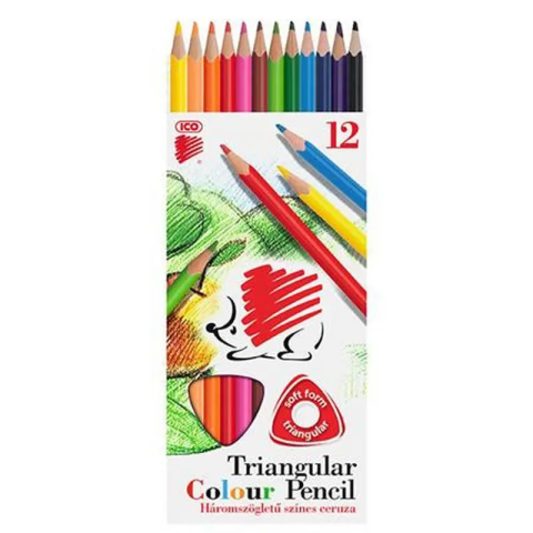 Színes ceruza készlet, háromszögletű, ICO Süni, 12 különböző szín. - /készlet (12 db) Háromszögletű színes ceruza -lakkozott ceruzatest -kiváló minőség és színintezitás Gyártó/első EU forgalmazó elérhetősége: ICO ZRT 2013 Pomáz, ICO út 5.; EU post@i