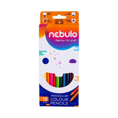 Színes ceruza készlet, háromszögletű, NEBULO, 12 különböző szín
