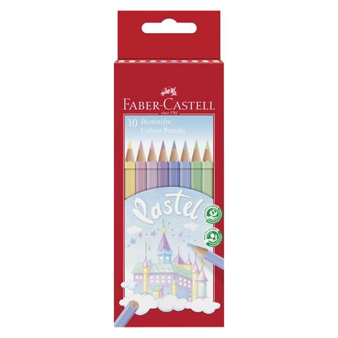 Színes ceruza készlet, hatszögletű, FABER-CASTELL, 10 különböző pasztell szín Gyönyörű pasztell színek! -klasszikus hatszögletű forma -törésálló hegy -klímasemleges gyártás -tanusítvánnyal rendelkező erdőgazdaságból származik Gyártó/első EU forgalmaz