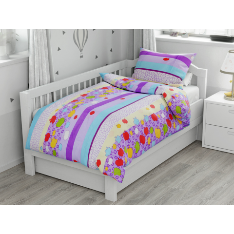 1 kép SZÍNES CSÍKOK ALMÁVAL lila pamut baba ágyneműhuzat