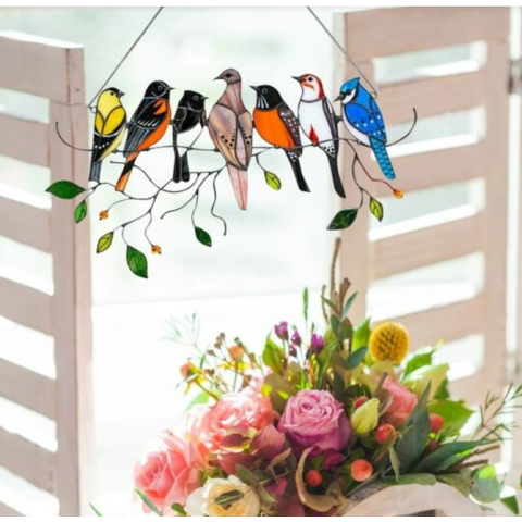 Színes, festett műanyagból készült dekor madarak 7 madaras