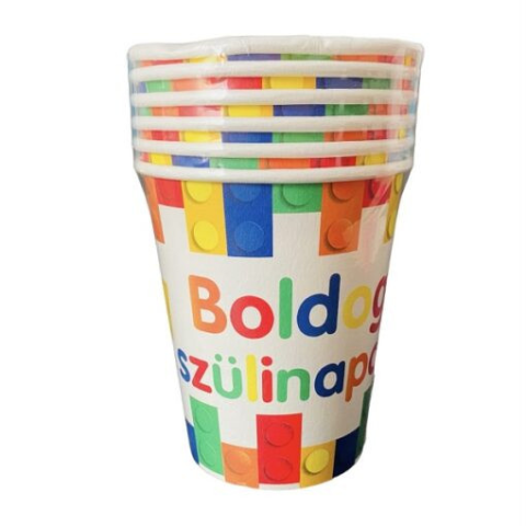 1 kép Színes legó mintás papír pohár 6 db/ csomag