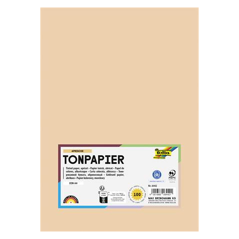 Színes papír, A4, 130 g, 100 lap, FOLIA, barack -klasszikus színes rajzlap, állandó minőség és ragyogó színek, 100%-ban színezett, gyönyörű, motiváló színárnyalatok Gyártó/első EU forgalmazó elérhetősége: Max Bringmann KG Johann-Höllfritsch-Str. 3