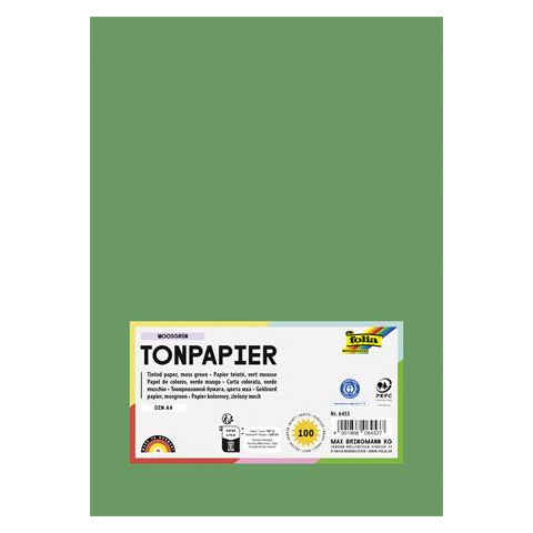 Színes papír, A4, 130 g, 100 lap, FOLIA, mohazöld -klasszikus színes rajzlap, állandó minőség és ragyogó színek, 100%-ban színezett, gyönyörű, motiváló színárnyalatok Gyártó/első EU forgalmazó elérhetősége: Max Bringmann KG Johann-Höllfritsch-Str.