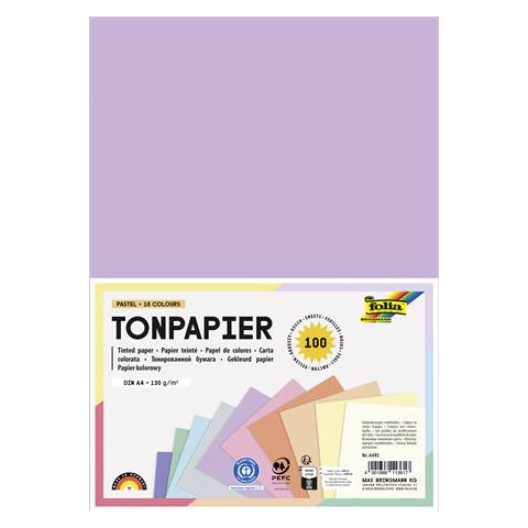Színes papír, A4, 130 g, 10x10 lap, FOLIA, „Pastel”, vegyes színek Klasszikus színes rajzlap, állandó minőség és ragyogó színek, 100%-ban színezett, gyönyörű, motiváló színárnyalatok. -10 különböző színű lapot tartalmaz (fehér, pasztelsárga, pasztel