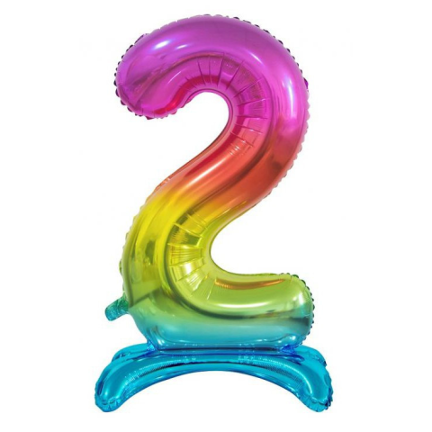 1 kép Színes Rainbow 2-es szám fólia lufi talppal 74 cm