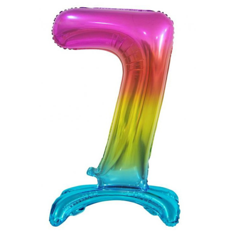 Színes Rainbow 7-es szám fólia lufi talppal 74 cm