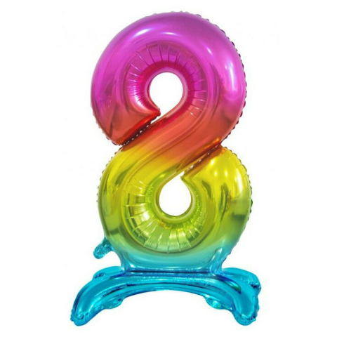 1 kép Színes Rainbow 8-as szám fólia lufi talppal 74 cm