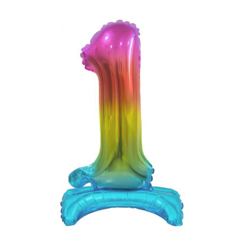 1 kép Színes Rainbow mini 1-es szám fólia lufi talppal 38 cm