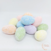 Méret: 6x4,5 cm Szín: kék, zöld, fehér, lila, rózsaszín, sárga, narancs Tömeg: 12 gramm (12 db tojás) 12 db tojás egy csomagban, vegyes színben. Tojás dekoráció húsvéti ajtó- és asztaldíszekhez, tavaszi dekorációkhoz. Rögzítése nagyon egyszerű ragaszt