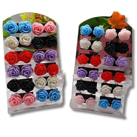 Lenyűgöző színes rózsás beszúrós fülbevaló romantikus alkalmakra. Tökéletes ajándék ötlet, amely eleganciát kölcsönöz minden megjelenéshez
