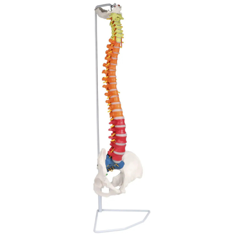 Életnagyságú, hajlékony emberi gerincoszlop nyakszirtcsonttal, nyaki-, mellkasi- és ágyéki csigolyákkal, valamint a kereszt- és farokcsonttal és teljes medencével. A csontokon szemléltetve vannak a gerincvelői idegek, csigolya artériák és porckorongok is. A modellt állvánnyal együtt forgalmazzuk.