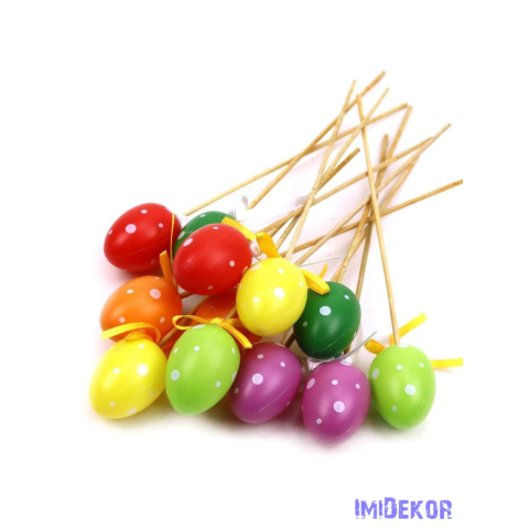 1 kép Színes tojás fa pálcán 12db/csomag - Pöttyös