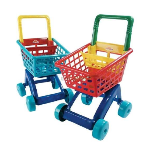 Színes tologatós bevásárlókocsi gyerekeknek babaültetővel